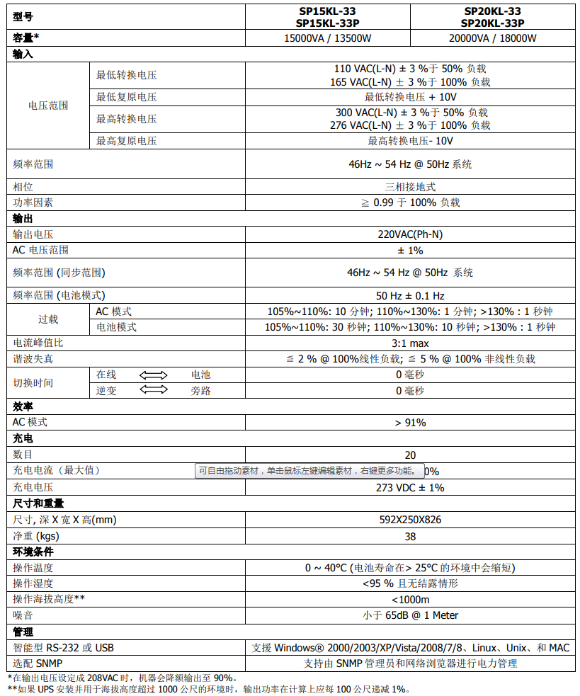 施耐德 SP15KL/ 20KL 是一款高性能不間斷電源產品(UPS)能夠有效保護電子設備,防止設備因以下原因而受損,如:市電斷電、電壓過低、電壓驟降、浪涌、小幅市電波動和電源擾動等。另外該產品在市電恢復安全水平或電池完全放電前還能作為備用電源使用。